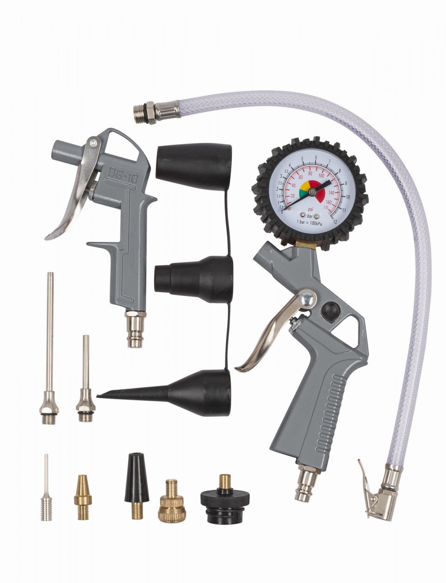 Praktická 13ks sada príslušenstva PowerPlus POWAIR0023 k olejovým a bezolejovým kompresorom z radu POWX nájde uplatnenie v každej domácnosti, dielni, garáži či v telocvični. Súčasťou tejto úžasnej sady je pneumatická pištoľ s rýchloupínacím systémom Quick and Easy, 2 ofukovacie trysky, 5m polyetylénová vzduchová hadica a 8 nástavcov pre univerzálne použitie. S touto 13dielnou pneumatickou sadou vás už nikdy nič nezaskočí, pretože máte všetko potrebné po ruke. Môžete hravo nafukovať kolesá, bazény, kruhy, lehátka, lopty a iné predmety bez akéhokoľvek obmedzenia.