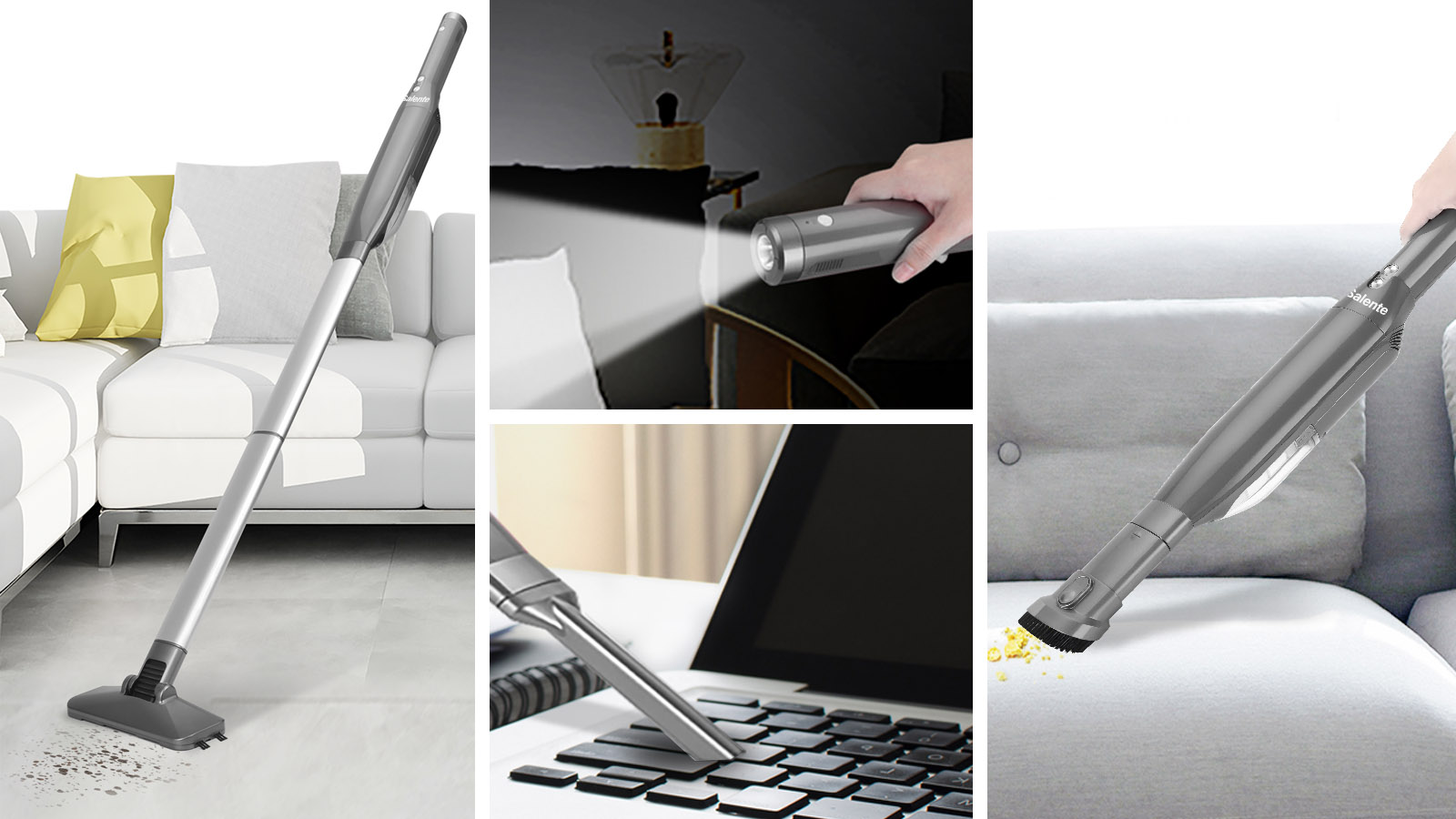Multifunkční vysavač Salente HandyPlus je elegantní pomocník do vaší domácnosti. Ruční vysavač využijete například při úklidu drobného nepořádku na vaší sedačce nebo klávesnici. Prodloužením vysávacího potrubí získáte tyčový vysavač pro úklid podlahy. Odnímatelná baterie navíc disponuje velmi výkonnou LED svítilnou.