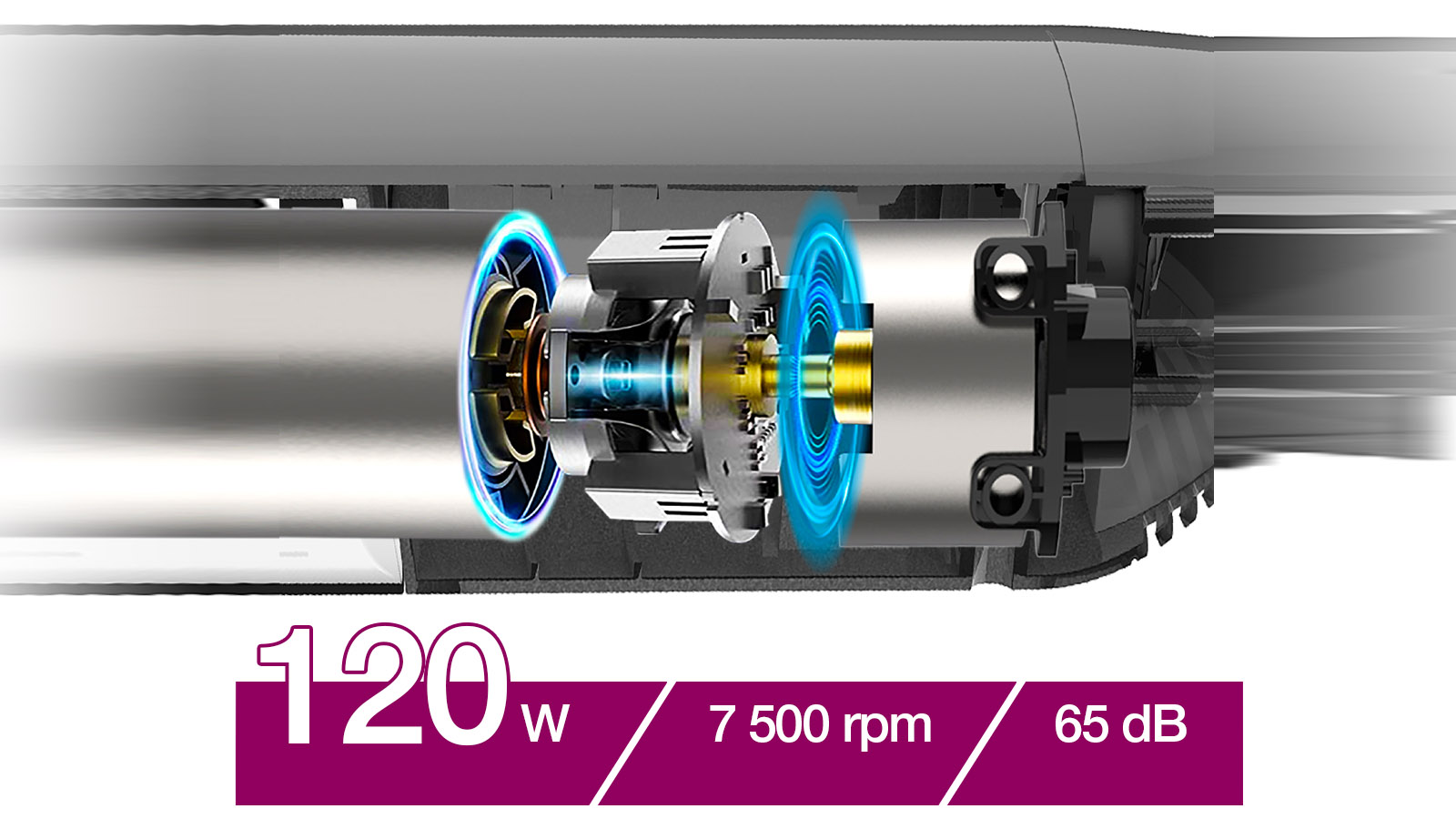 Osazený BLDC motor dosahuje výkonu až 120W, má o třetinu delší životnost, vyšší spolehlivost, tišší chod a hlavně úspornější provoz oproti klasickým motorům.