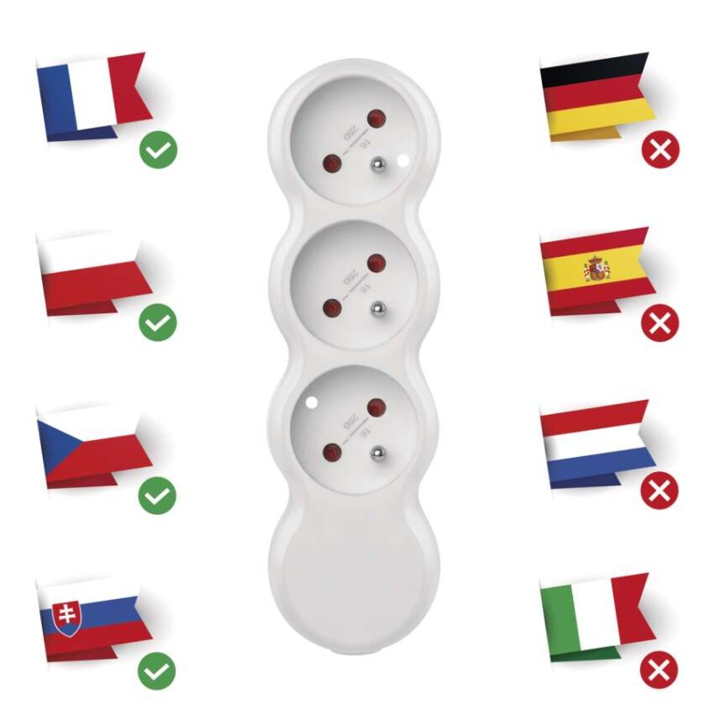 detské clonky: áno|diaľkový ovládač: nie|dosah signálu: neuvádza sa|easy learning: nie|farba: biela|krytie: IP20|materiál: plast|max. záťaž: neuvádza sa|možnosť ovládania: nie|napätie/prúd: 250 V~/16 A max.|počet pólov: neuvádza sa|počet zásuviek: 3× 2P + PE|pozície ochranného kontaktu: neuvádza sa|predajný obal: 1 ks, záves|prenosová frekvencia: nie|produkt: zásuvkové pole – pripojenie pomocou svorkovnice|typ: FRENCH|vonkajšie použitie: nie|vypínač: nie