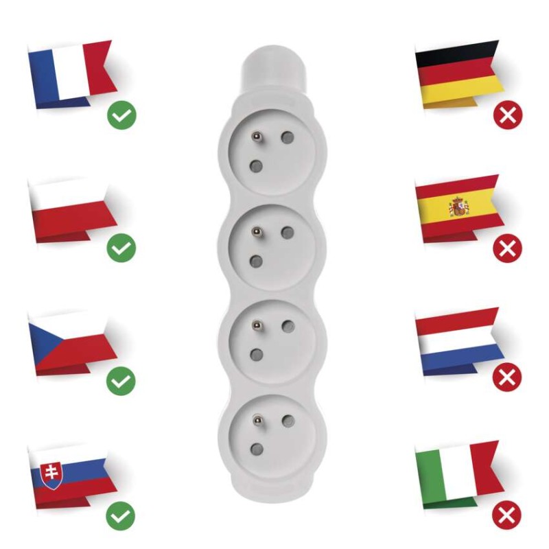 detské clonky: áno|diaľkový ovládač: nie|dosah signálu: neuvádza sa|easy learning: nie|farba: biela|krytie: IP20|materiál: plast|max. záťaž: neuvádza sa|možnosť ovládania: nie|napätie/prúd: 250 V~/16 A max.|počet pólov: neuvádza sa|počet zásuviek: 4× 2P + PE|pozície ochranného kontaktu: neuvádza sa|predajný obal: 1 ks, záves|prenosová frekvencia: nie|produkt: zásuvkové pole|typ: FRENCH|vonkajšie použitie: nie|vypínač: nie