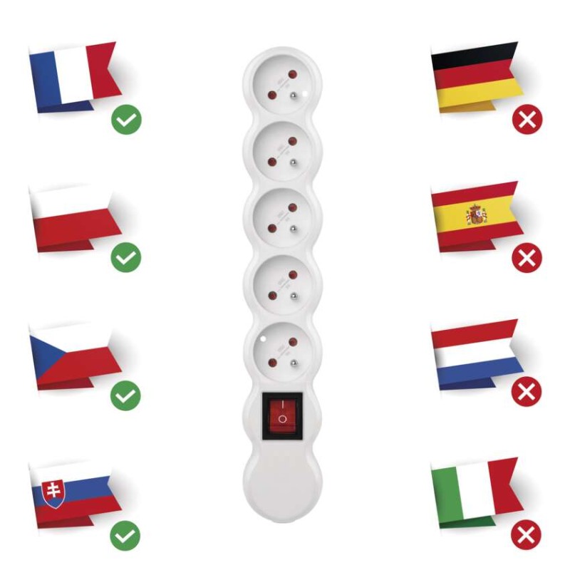 Samostatná 5 zásuvka s vypínačom, biela 8592920113370