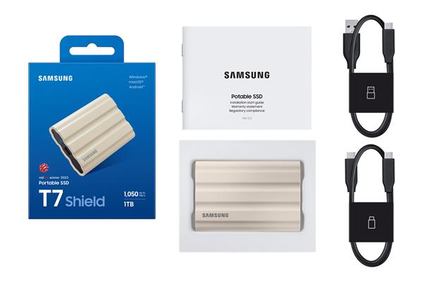 SAMSUNG Portable SSD T7 Shield 1TB / USB 3.2 Gen 2 / USB-C / Externí / Béžový MU-PE1T0K/EU
