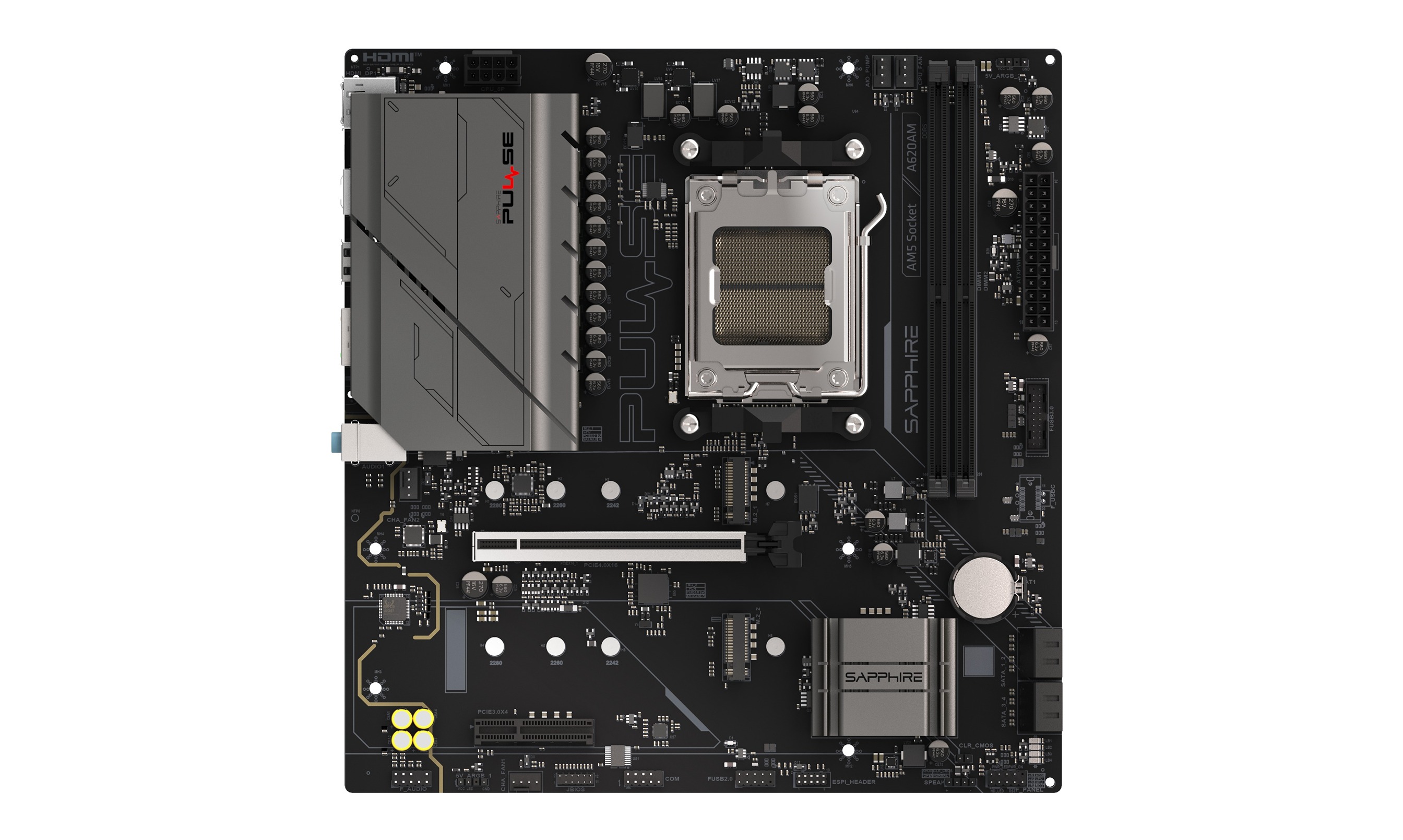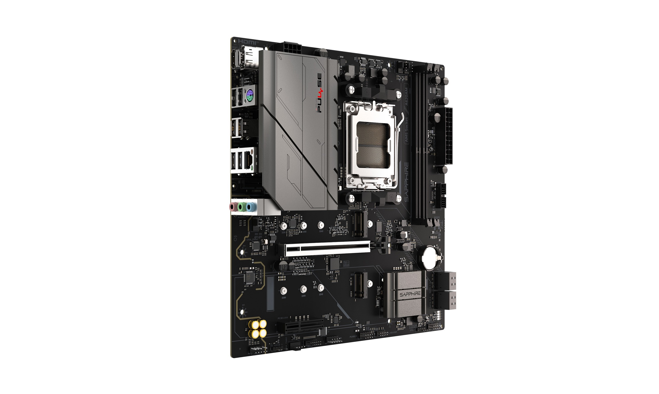 SAPPHIRE PULSE A620AM Čipset: AMD® A620A Rozměrový formát: micro-ATX, 244x235mm Podpora pro procesory: AMD Ryzen™ řady 9000/8000/7000 Patice procesoru: AM5 Paměť: * 2x DIMM, dvoukanálové DDR5, maximální kapacita paměti 64 GB (2x 32 GB), až 7600 MT/s (p...
