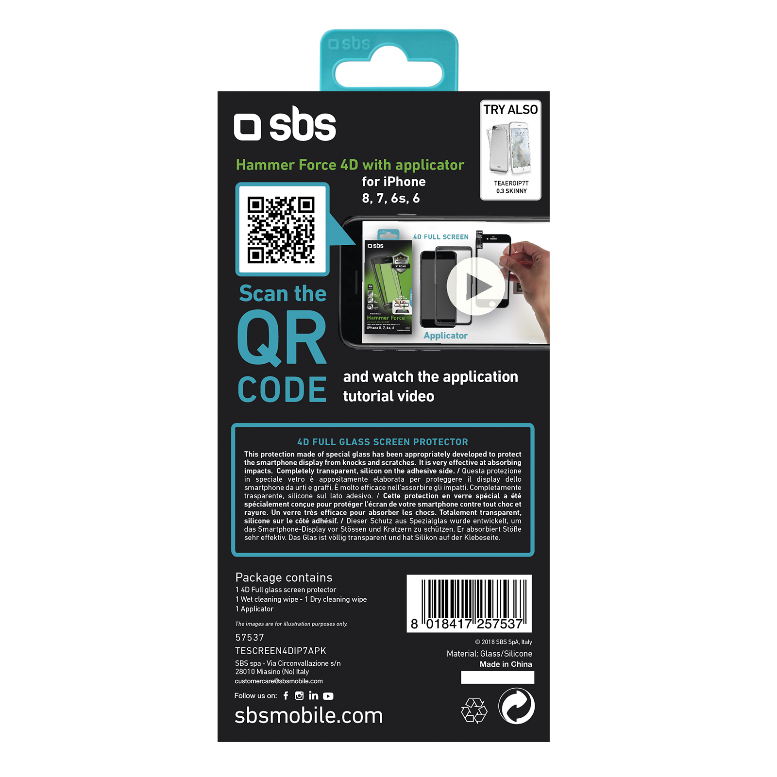 4D Full Glass ochranné tvrdené sklo prémiovej značky SBS mobile je vyrobené zo špeciálne spracovaného skla, ktoré ochráni displej Vášho zariadenia pred poškriabaním alebo poškodením pri páde. Sklo má špeciálnu oleofóbnu vrstvu, ktorá zabraňuje zanechávaniu nežiaducich odtlačkov prstov, takže vždy zostáva krásne čisté a priehľadné. Oproti štandardným sklám, ktoré chránia iba časť displeja, 4D Full Glass sklo siaha až po okraj displeja smartfónu čím poskytuje ochranu celému displeju. Navyše majú farebné okraje, aby dokonale splynuli s displejom Vášho smartfónu. Zadná strana skla je potiahnutá špeciálnym silikónovým lepidlom, vďaka ktorému je inštalácia veľmi rýchla a jednoduchá. Navyše pri hrúbke iba 0,33 mm je na zariadení takmer neviditeľné. V balení nájdete aj inštalačnú pomôcku v tvare rámiku ktorá Vám zjednoduší inštaláciu.