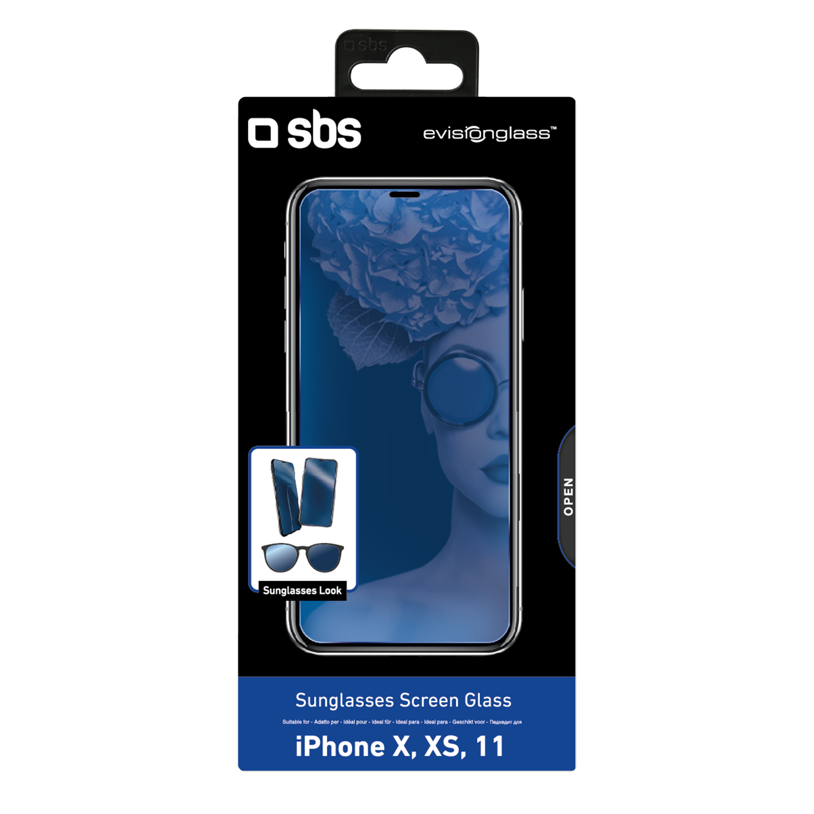 SBS - Tvrdené sklo Sunglasses pre iPhone 11 Pro/XS/X, modrá TEVISIP5819B