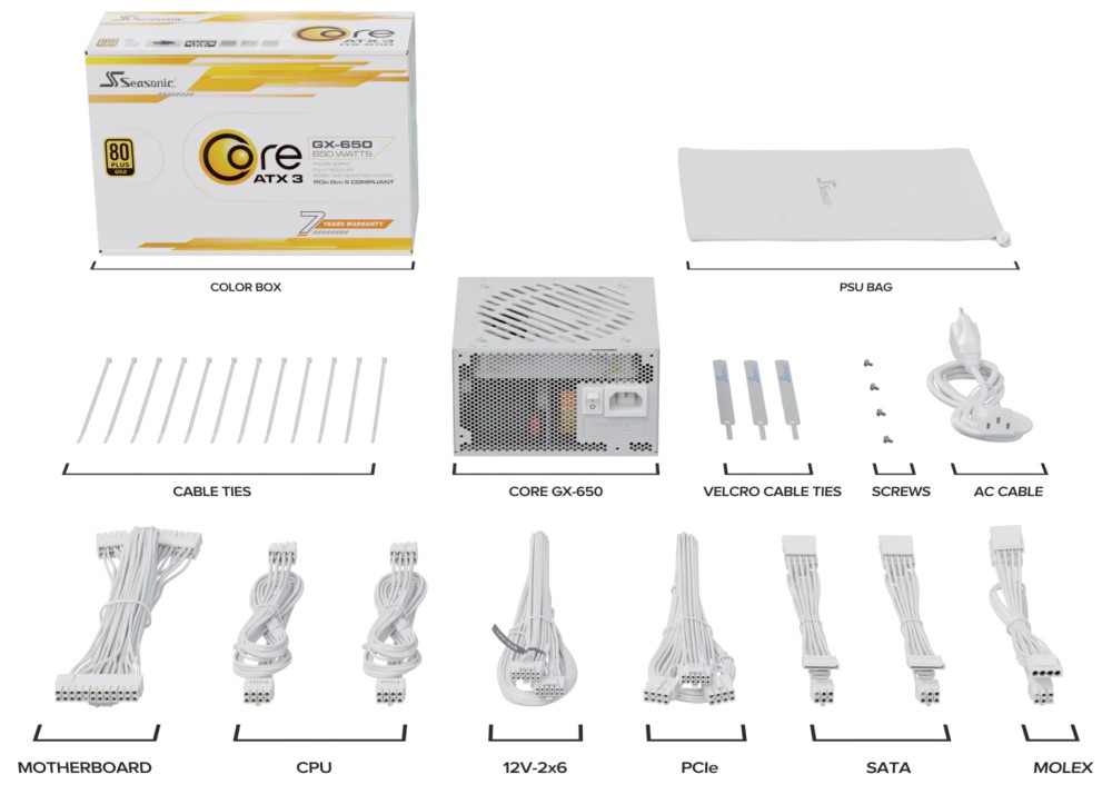 Seasonic Core GX 650W White je špičkový plně modulární ATX 3.1 napájecí zdroj, který přináší spol