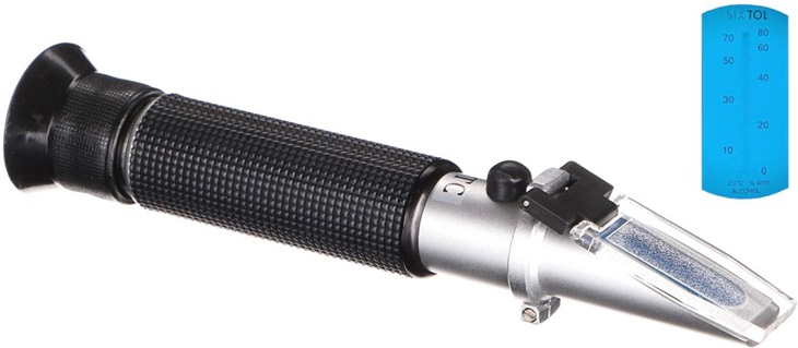 Optický refraktometr pro měření objemových procent alkoholu se používá pro měření ovocných pálenek jako slivovice, meruňkovice atd. a obdobných destilátů jako whisky, bourbon, vodka, gin atd. Refraktometr je přístroj pro měření indexu lomu paprsku světla a takto lze určovat složení kapalných směsí č