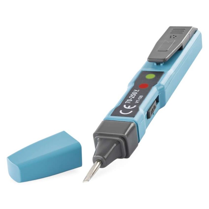 bezkontaktné meranie: polarita zdrojov, skratu, vyžarovania mikrovlnných rúr, monitorov|frekvenčný rozsah: 0–60 Hz|jednosmerné a striedavé napätie: 0–250 V, 70–250 V|jednosmerné napätie: 0 až 250 V bezkontaktne|meranie spojitosti obvodov: nie|napájanie: 2× 1,5 V LR44 (súčasťou balenia)|nastavenie dvoch citlivostí: áno|predajný obal: 1 ks, krabička|signalizácia: optická + akustická|striedavé napätie: 70 až 250 V bezkontaktne|určenie fázy: nie|určenie polarity: áno