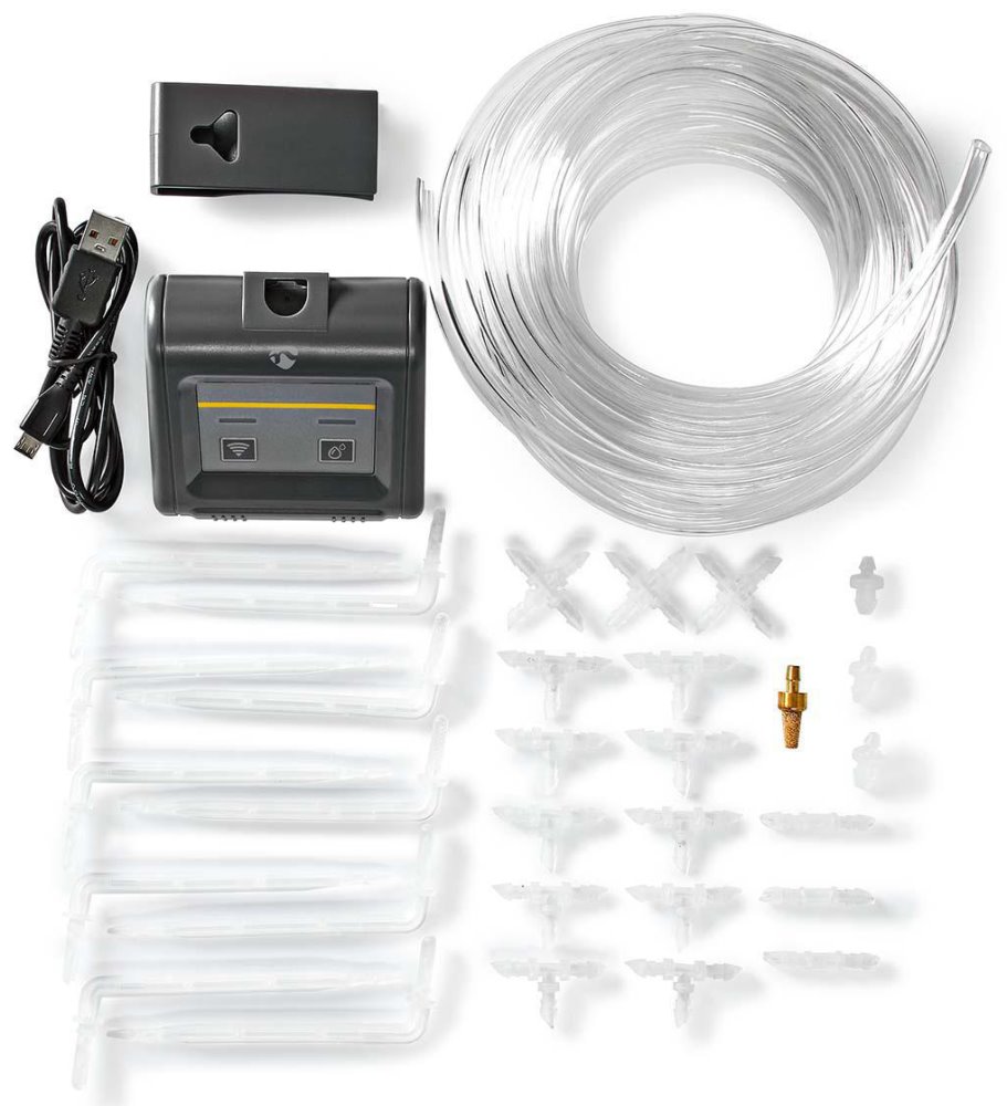 Umístěte Nedis SmartLife Vodní Čerpadlo do blízkosti svých rostlin, odřízněte a použijte dodané trubice o délce 10 metrů se všemi doplňky, abyste dosáhli na všechny požadované rostliny i zvolené nádoby na vodu: kbelík, lahev nebo konev.