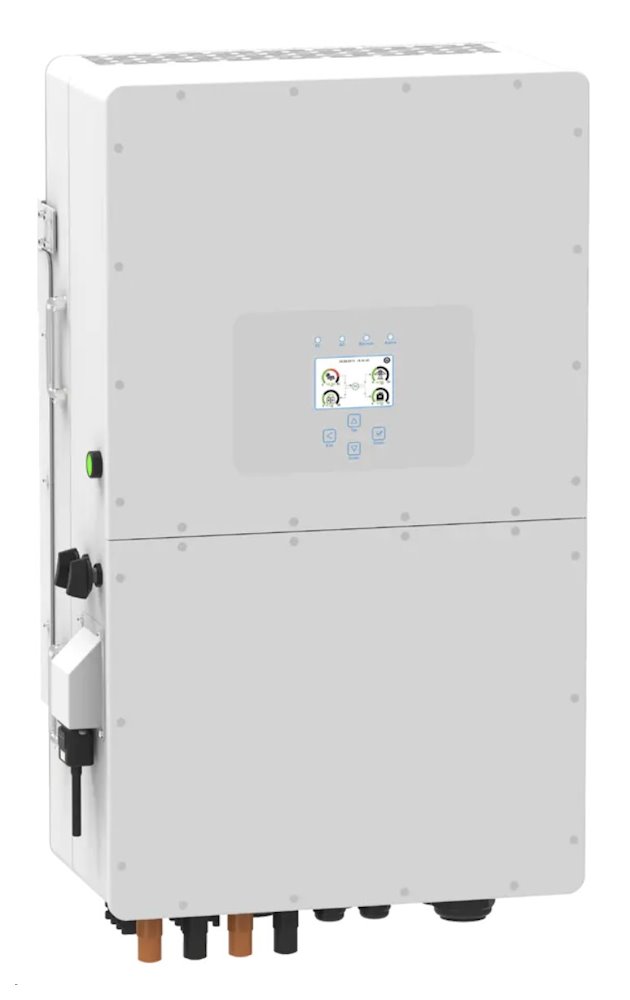 Multifunkční 3fázový asymetrický (100%) hybridní měnič/střídač od výrobce DEYE s vysokonapěťovou baterií, který kombinuje funkce měniče, solární nabíječky a nabíječky baterií. Nabízí nepřerušovanou podporu napájení s možností regulace. Komplexní LCD displej zajišťuje uživatelsky konfigurovatelné a snadno dostupné ovládání (nabíjení baterie, AC/solární nabíjení, přípustné vstupní napětí v závislosti na různých aplikacích atd.). Je vybaven portem RS-485/CAN pro komunikaci a správu.