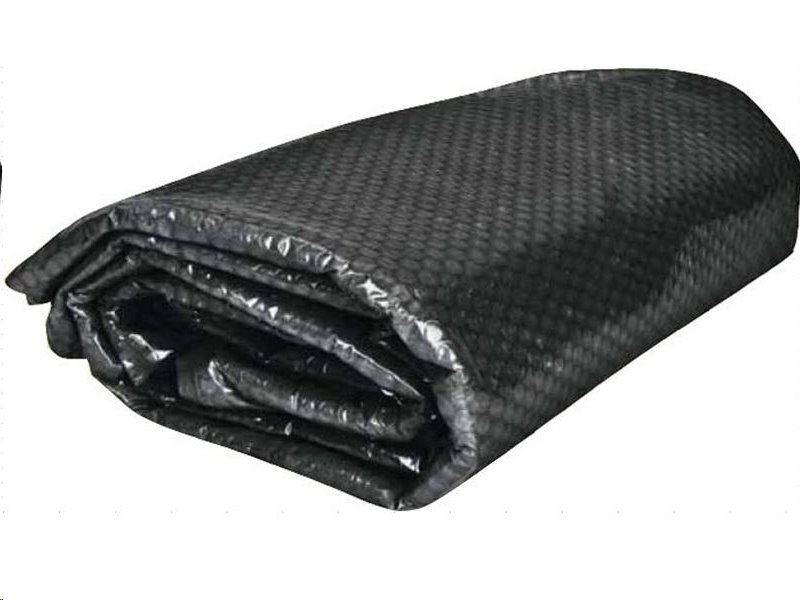 Černá solární plachta Marimex z polyetylenového tepelně izolačního materiálu, pro bazény s vodní hladinou o průměru 4,57 m. Bublinky v plachtě fungují jako čočky a ohřívají vodu, plachta zachytává padající nečistoty, zabraňuje odpařování chemikálií.