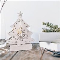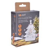 LED vianočný stromček počet LED diód: 2 farba svetla: teplá biela (žltá) napájanie: 2x AA batérie (nie sú súčasťou) výdrž batérií: cca 72hod. (v závislosti na kvalite batérií) trieda ochrany: IP20 (vnútorné použitie) rozmer: 15 x 11,5 x 3,5cm farba: bi...