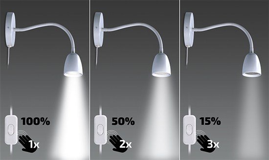 LED lampička disponuje zabudovanou elektronikou umožňujúce stmievanie obyčajným vypínačom umiestneným na prívodnej šnúre. Jedným stlačením vypínača lampička svieti na 100% výkonu. Dvoma rýchlymi stlačeniami lampička svieti na 50% výkonu. Tromi rýchlymi...
