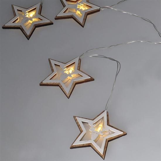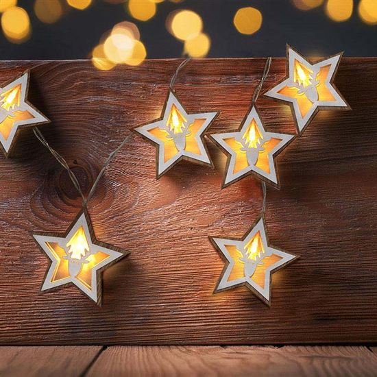 • Solight LED vianočná reťaz hviezdy, 10x LED, drevo, 1,5m, 2x AA 1V271