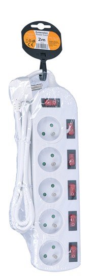 Solight predlžovací prívod, 5 zásuviek, biely, 6x vypínač, 2m PP143