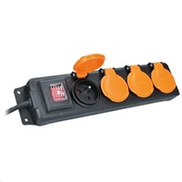 gumový kábel počet zásuviek: 4 prierez vodičov: 3 x 1,5mm2 typ kábla: H05RR-F 3G priama vidlica detské poistky farba: čierna stupeň ochrany: IP44 dĺžka: 5m 230V/16A, max. 3680W vypínač