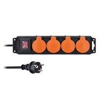 Solight prodlužovací přívod IP44, 4 zásuvky, gumový kabel, vypínač, venkovní, 5m PP333