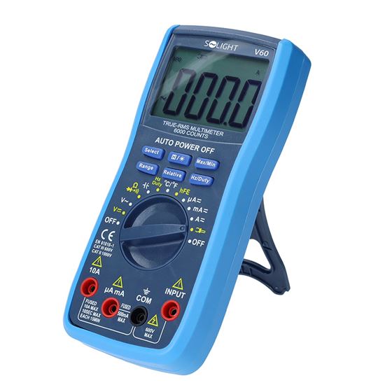 Digitálny multimeter s podsvieteným displejom LCD (64 × 42 mm) a maximálnym zobrazením 6 000 hodnôt. Ponúka funkciu HOLD na uchovanie hodnoty, relatívne meranie (režim REL) a funkciu MAX/MIN na zaznamenávanie extrémnych hodnôt. Test diód, test hFE tranzistorov, test spojitosti so zvukovým signálom. Automatická detekcia polarity, indikácia nebezpečného napätia. Meranie DC/AC napätia (600mV - 1000V), DC/AC prúdu (600µA - 10A), odporu (600? - 60M?), kapacity (60nF - 60mF), teploty (-40°C - 1000°C), frekvencie (10Hz - 10MHz). Ochrana proti preťaženiu a vysokému napätiu (1000V DC / 750V AC). Napájanie: 9V batéria (6F22). Rozmery: 190 × 90 × 35 mm, hmotnosť: 357 g.