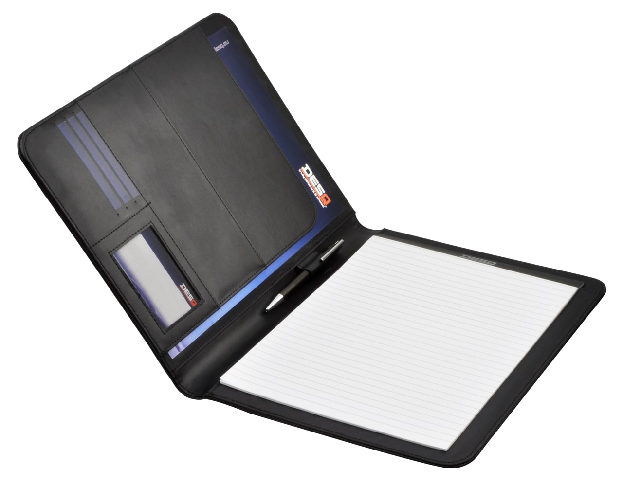 - Spisovka A4 z umělé kůže - 1 kapsa na dokumenty A4 - 1 kapsa na dokumenty A5 - 5 kapes na karty nebo vizitky - 1 poutko na pero - Obsahuje poznámkový blok A4 (20 listů) - Barva: černá - Rozměr 325 x 256 x 20 mm