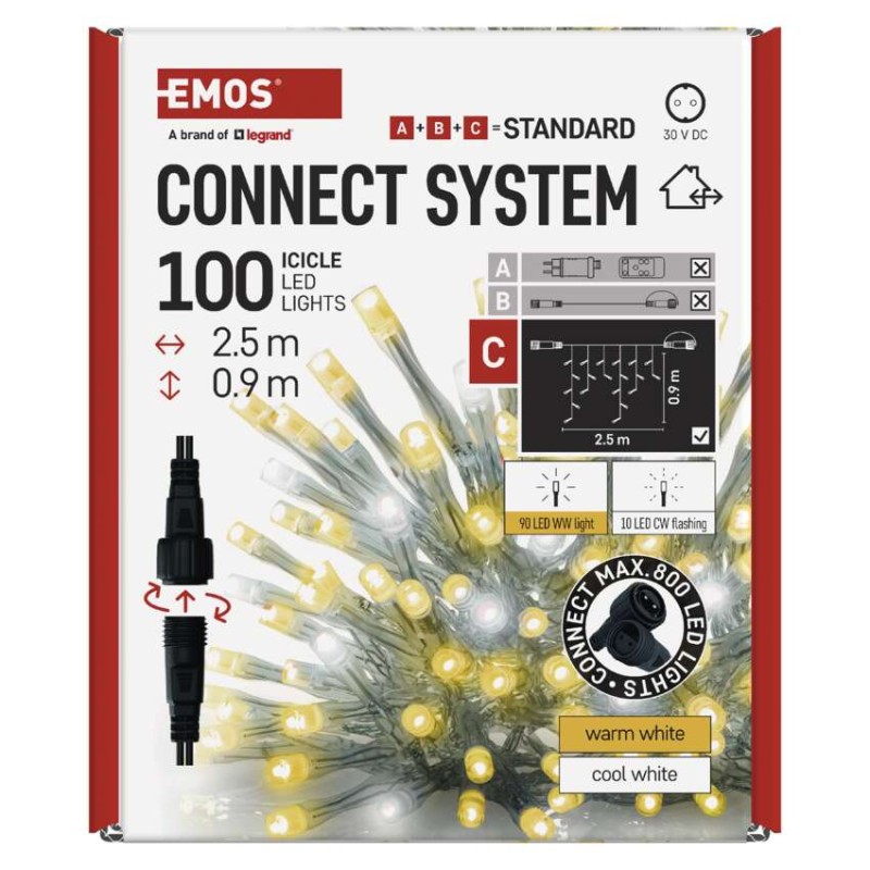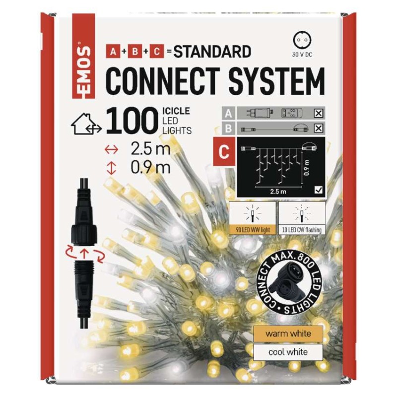 Standard LED spoj. reťaz blikajúca – cencúle, 2,5 m, vonkajšia, teplá/studená biela 8592920094815