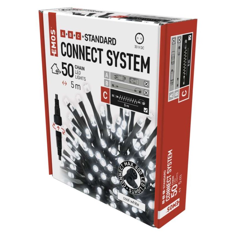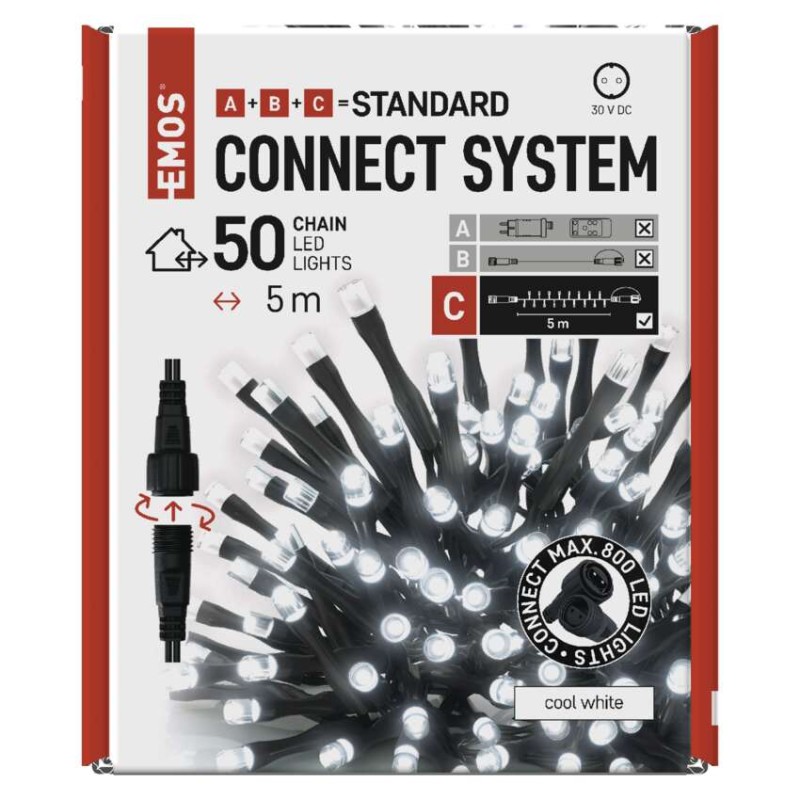 Standard LED spojovacia vianoč. reťaz, 5 m, vonkajšia aj vnútorná, studená biela, časovač 8592920094754