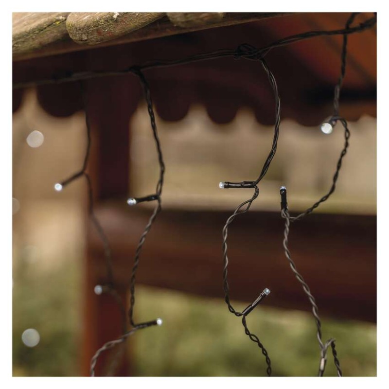 časovač: áno|diaľkový ovládač: nie|dĺžka prívodu: 10 cm|farba drôtu: čierna|farba svetla: studená biela|funkcia: svieti|krytie: IP44|LED medzera: 10 cm|materiál: PVC|možnosť prepojenia: áno|počet LED: 100|použitie: vonkajšie aj vnútorné|predajný obal: 1 ks, krabica|pre výšku stromu: neuvádza sa|príkon: 1,2 W|produkt: reťaz|rozmer: 2,5 × 0,9 m|tvar: klasický|typ napájania: sieťový adaptér|veľkosť LED: 5 mm|vstupné napätie: 230 V AC|výstupné napätie: neuvádza sa|záručná doba: 2 roky|životnosť: 10 000 hodín
