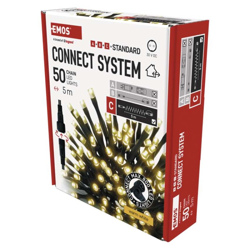 Standard LED spojovacia vianočná reťaz, 5 m, vonkajšia aj vnútorná, teplá biela 8592920094686