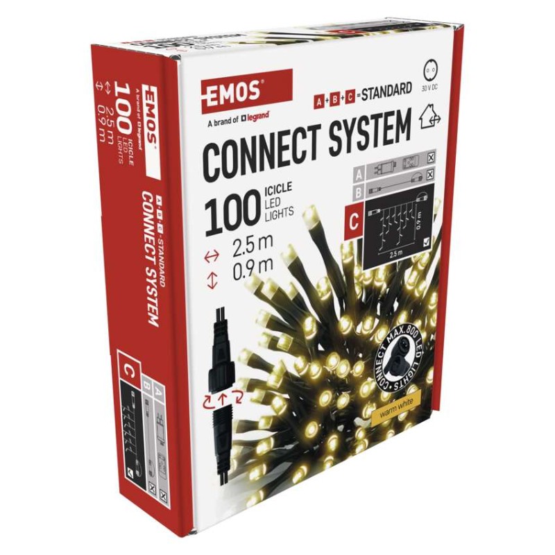 Standard LED spojovacia vianočná reťaz – cencúle, 2,5 m, vonkajšia, teplá biela, časovač 8592920094709