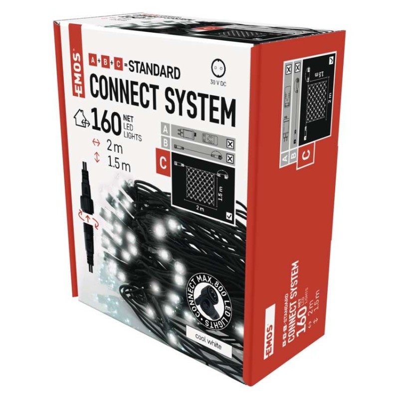 Standard LED spojovacia vianočná reťaz – sieť, 1,5x2 m, vonkajšia, studená biela, časovač 8592920094808