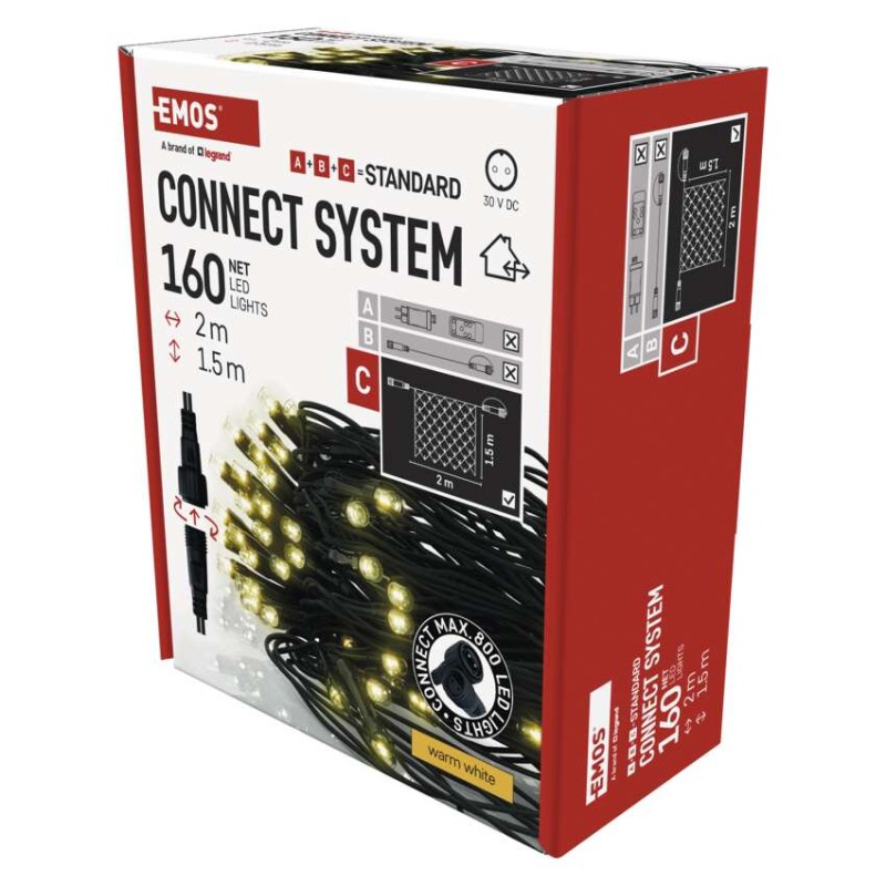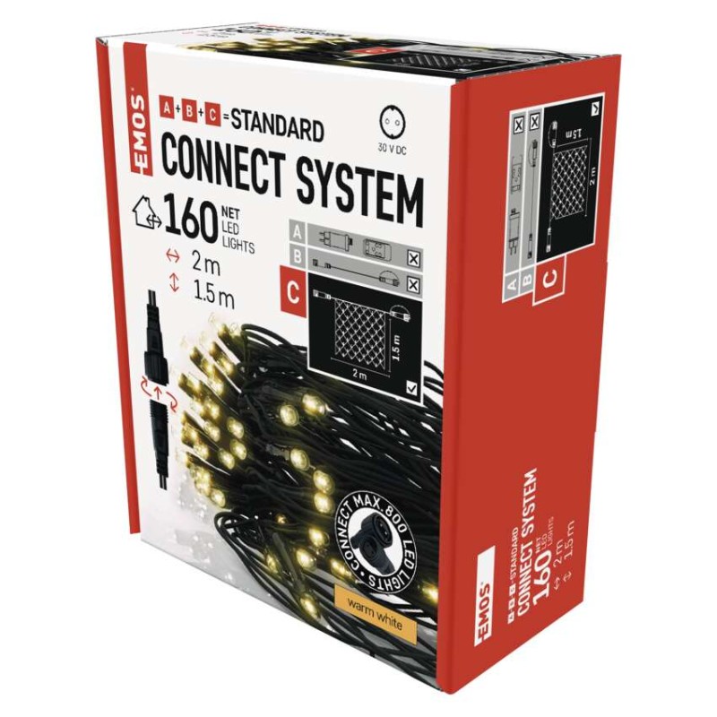 Standard LED spojovacia vianočná reťaz – sieť, 1,5x2 m, vonkajšia, teplá biela, časovač 8592920094723