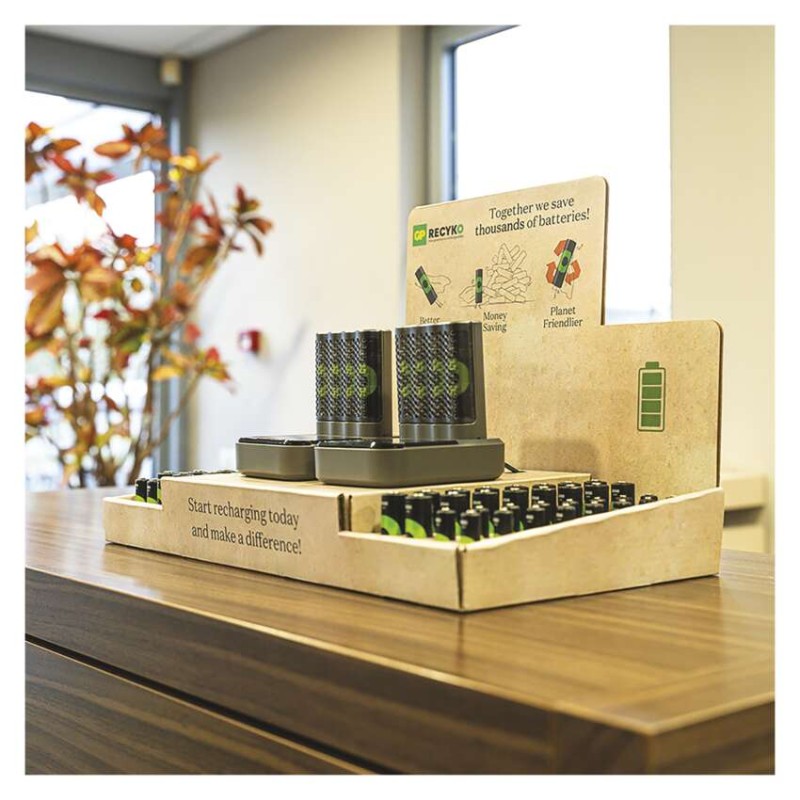 • Stojan GP ReCyko Premium / 2×nabíjačka GP + dok / 26×AA + 16×AAA / 2×USB-A adaptér 8592920154021