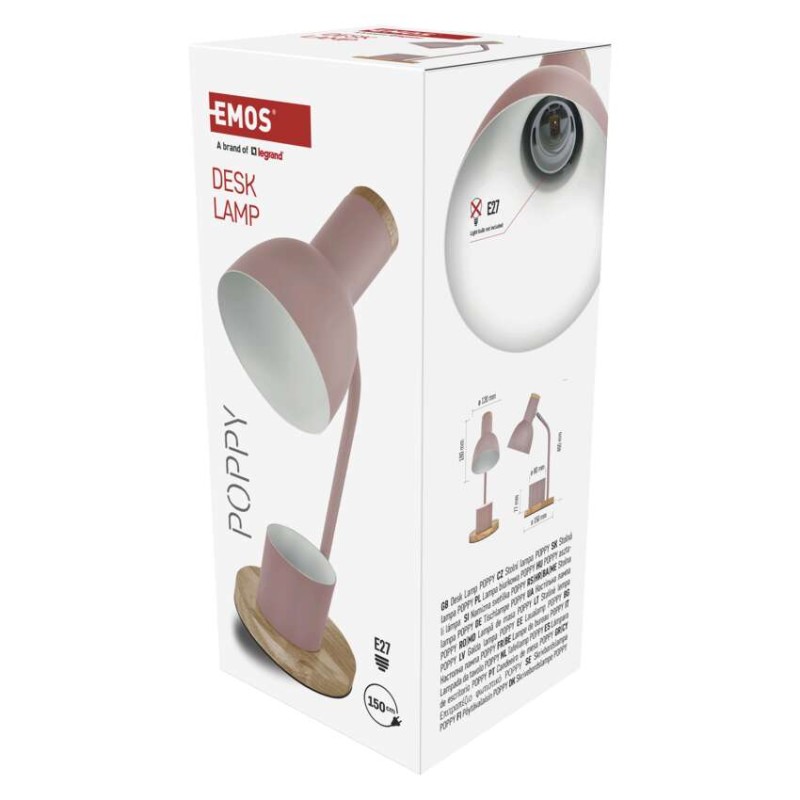 činiteľ starnutia: –|čip LED: –|dĺžka prívodného kábla: 1,5 m|energetická trieda: –|energetická trieda (od 1.9.2021): –|farba: ružová|farba svetla: –|index podania farieb (CRI): –|integrovaná nabíjacia batéria: nie|krytie: IP20|materiál: kov + drevo|max. výkon: 25 W|napájacie trafo: 220–230 V|napájací zdroj súčasťou balenia: –|napätie: 220–230 V AC|obsah ortuti: –|pätica (uchytenie žiarovky): E27|počet LED: 0|počet spínacích cyklov: 10 000|predajný obal: 1 ks, krabica|príkon: 25 W|rozmer: 150 × 150 × 400 mm|rýchlosť nábehu na 100 %: –|stmievanie: nie|svetelný tok: –|teplota chromatičnosti: –|typ napájania: sieť|účinník: –|USB port: nie|životnosť: –