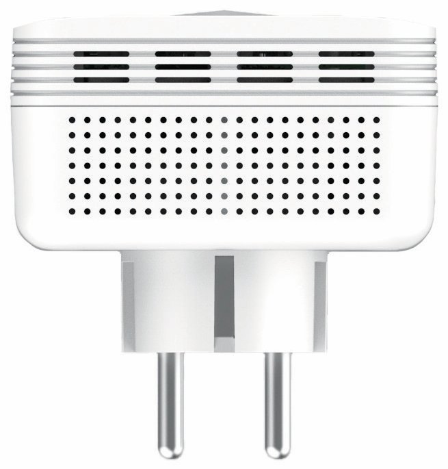 Základní adaptér s frekvencí 2–68 MHz pro připojení k routeru. Obsahuje jeden Gigabit Ethernet port (10/100/1000 Mbit/s) s Auto MDI/MDIX a průchozí elektrickou zásuvku 250 V AC s maximálním zatížením 16 A. Vybaven tlačítkem Connect & Secure/Reset a LED indikátory napájení, Powerline spojení a Ethernet připojení. Rozměry 136 × 80 × 76 mm, hmotnost 0,3 kg.