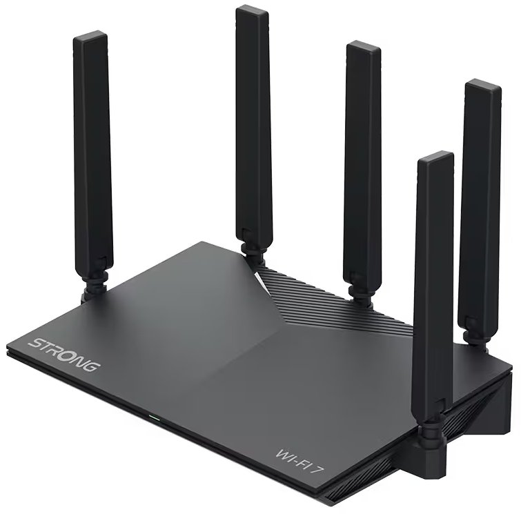 Wi-Fi 7 dvoupásmový router s rychlostí až 3600 Mbit/s. Vybaven 2,5Gb WAN portem, 3× Gigabit LAN, pěti externími anténami a pokročilým zabezpečením WPA3. Snadná správa přes aplikaci MySTRONG.