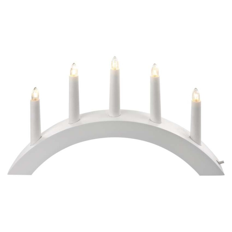 Svietnik na 5x žiarovku E10 drevený biely, oblúk, 20x38 cm, vnútorný, teplá biela 8592920093283