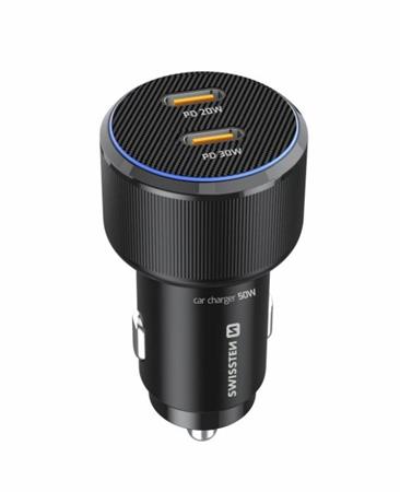 Výkonná a kompaktní autonabíječka s dvojicí USB-C portů a podporou PD 3.0. Umožňuje rychlé nabíjení dvou zařízení současně výkonem až 50W. Modrý LED kroužek usnadňuje připojení kabelů i při jízdě v noci.