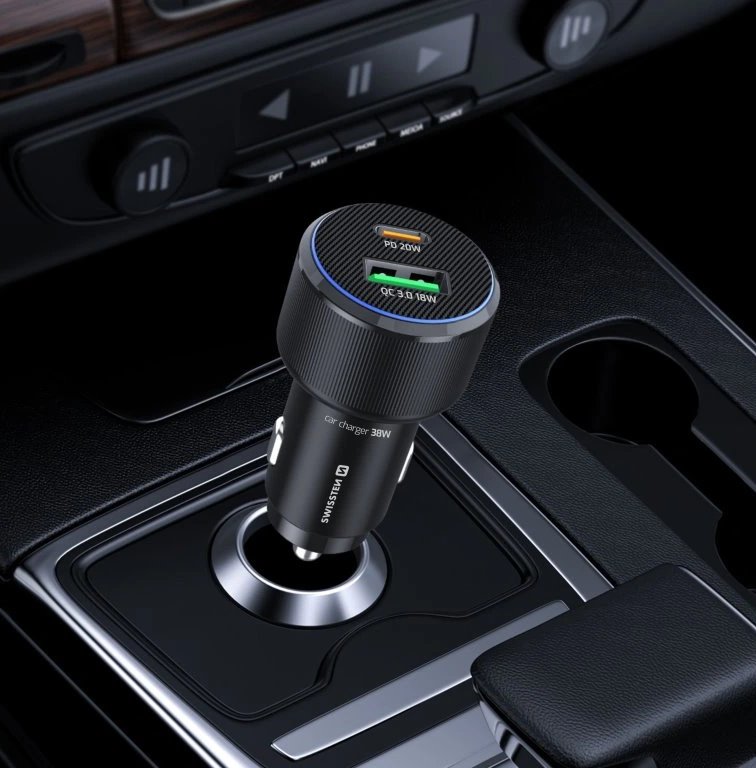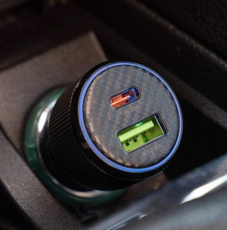 Výkonná a kompaktní autonabíječka s podporou rychlého nabíjení PD 3.0 a QC 3.0. Díky kombinaci portů USB-C a USB-A dokáže rychle a bezpečně dobíjet až dvě zařízení současně. Modré LED osvětlení v obvodu nabíječky usnadňuje připojení k
