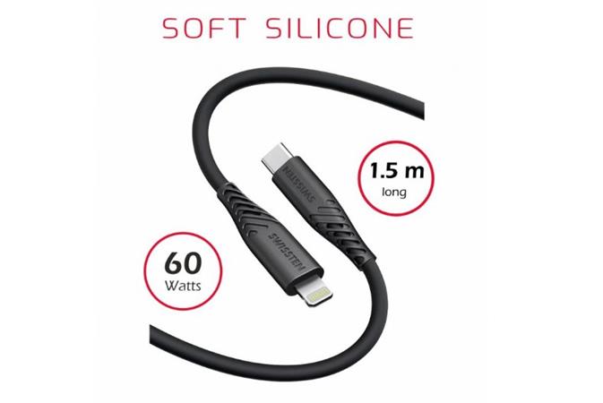 SWISSTEN DATOVÝ KABEL SOFT SILICONE USB-C / LIGHTNING 1,5 M 60W ČERNÝ