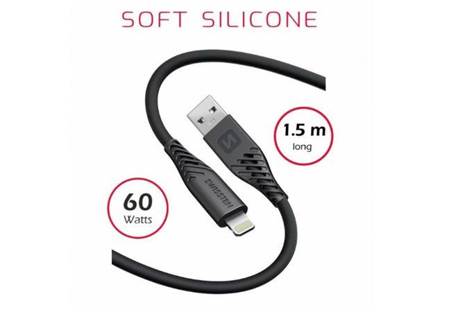 SWISSTEN DATOVÝ KABEL SOFT SILICONE USB / LIGHTNING 1,5 M 60W ČERNÝ 71533010