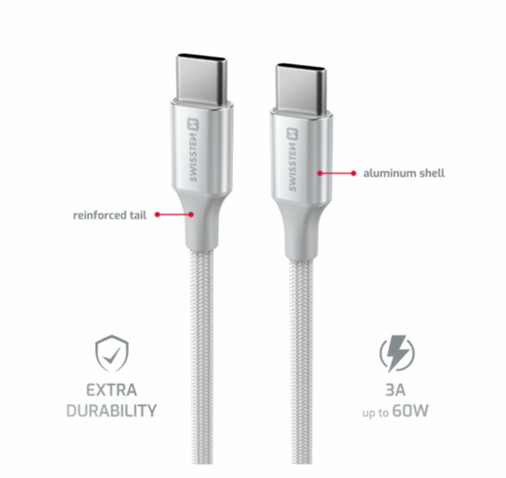 SWISSTEN DATOVÝ KABEL TEXTILE II USB-C / USB-C 1,5 M BÍLÝ 71528204