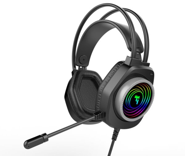Headset, drátový, náhlavní, mikrofon, RGB osvětlení, 3,5mm jack, USB, kabel 2,1m, černý