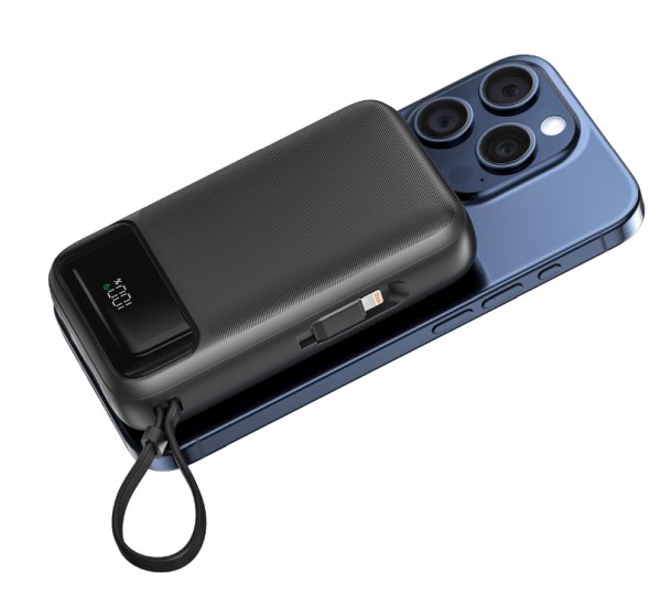 Jelikož má powerbanka integrované kabely s koncovkami USB-C a Lightning již nadále nebudete muset řešit jakékoliv kabely. Powerbanku pomocí USB-C koncovky i nabijete.
