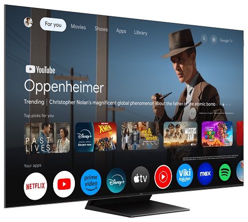 Televize - Google TV, QLED, Mini LED, 165cm, 4K Ultra HD, 144 Hz, HDR10+, Dolby Vision, lokální stmívání, DVB-T2/S2/C, 4× HDMI, 1× USB, LAN, Bluetooth, DLNA, Chromecast, Miracast, hlasové ovládání, Google Assistant, Apple Airplay 2, VESA 300×300, Dolby Atmos, DTS HD, DTS:X, DTS Virtual: X, Dolby Digital +, matný obraz, en. třída F
