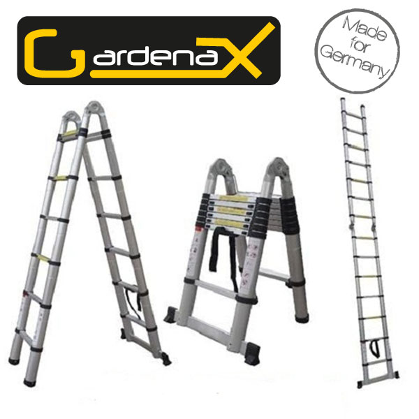 ZNAČKOVÝ HLINÍKOVÝ TELESKOPICKÝ ŽEBŘÍK Gardenax GA-TZ12-3,8M. Špičkový model původně vyvinutý pro profesionály se vyznačuje dostatečně tuhou konstrukcí, použitím lehkých hliníkových materiálů snižuje celkovou hmotnost a zároveň unikátní konstrukce zabezpečuje složení žebříku do minimální možné úložné velikosti. Tyto vlastnosti předurčují tento žebřík nejenom pro profesionální použití, ale najdou velice snadno použití v dílně, domácnosti či na zahradě, kde uživatelé oceňují všechny jeho špičkové užitné vlastnosti. Speciálně možnost uložení žebříku ve složeném stavu ocení všichni, co ve své dílně či domácnosti bojují s nedostatkem prostoru, či se potřebují s žebříkem přesouvat na vzdálená místa a musí řešit problémy s dopravou žebříku v autech či jiných dopravních prostředcích. Všechny konstrukční prvky, stupnice, pojistné zámky jsou provedeny dle ergonomických zásad a podporují jejich snadné a intuitivní používání. Velmi oblíbený lehký a skládací hliníkový teleskopický žebřík který v mžiku proměníte v praktické štafle.