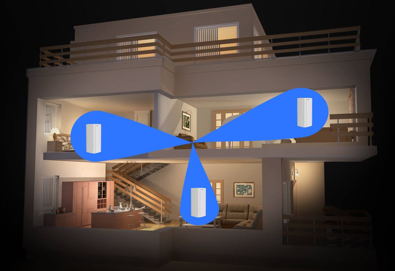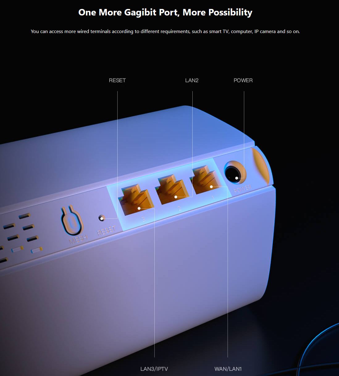 WiFi6 systém pro celý dům - 3 satelity 802.11ax/ac/a/b/g/n až 2976 Mbps (2.4GHz na 574Mbps + 5 GHz na 2402Mbps (2976Mbps)), IPv6, WPA3, MU-MIMO, Beamforming, 9x Gigabitový WAN/LAN port, SMART CZ aplikace, EasyMesh, každá jednotka 4x vnitřní anténa 3dBi...