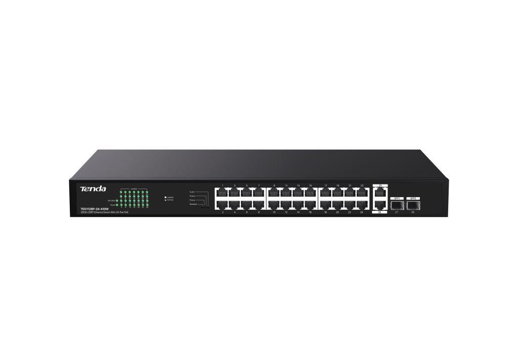 Tenda TEG1128P-24-410W PoE+ Gigabit switch 24x 1Gb/s PoE+ 802.3af/at + 2x SFP + 2x RJ45, 370W, Rack 75011995