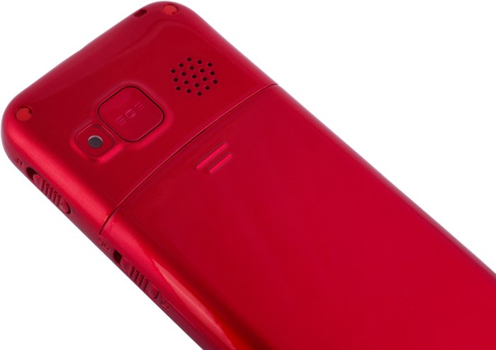 Mobilní telefon, pro seniory, Dual SIM, 2.3" barevný displej, SOS tlačítko, vestavěná svítilna, FM rádio, stojánek, červený