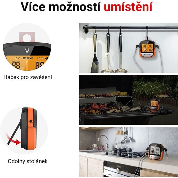 ThermoPro TP-902 je teplomer na potraviny, ktorý funguje bezdrátovo a má dosah až 137 metrov. Vďaka dvoch sondám môžete sledovať teplotu dvoch druhov potravín súčasne, alebo dokonca sledovať teplotu potravín a prostredia s presnosťou 1 °C. Jeho inteligentná konštrukcia sa odlišuje od ostatných teplomerov a hodí sa najlepšie pre grilovanie a používanie masa. Buďte neustále informovaní o aktuálnom stave pomocou upozornenia v reálnom čase prostredníctvom aplikácie Smart ThermoPro a jednoducho sledujte zmeny teploty v čase pomocou informatívnych grafov.