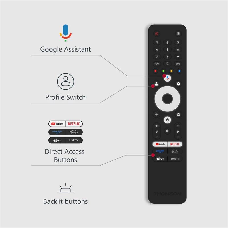 Premeňte svoju obývačku s televízorom Thomson Mini LED Google TV s uhlopriečkou 43", ktorý je navrhnutý tak, aby poskytoval úžasný obraz, bohatý zvuk a pohodlie inteligentnej zábavy v jednom elegantnom balení.